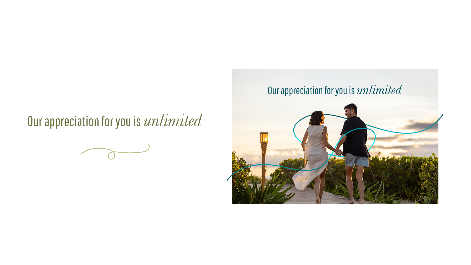 Rather than introducing a standalone campaign logo, a leading phrase—“Our appreciation for you is unlimited.”—was used to maintain alignment with brand typography and messaging standards.