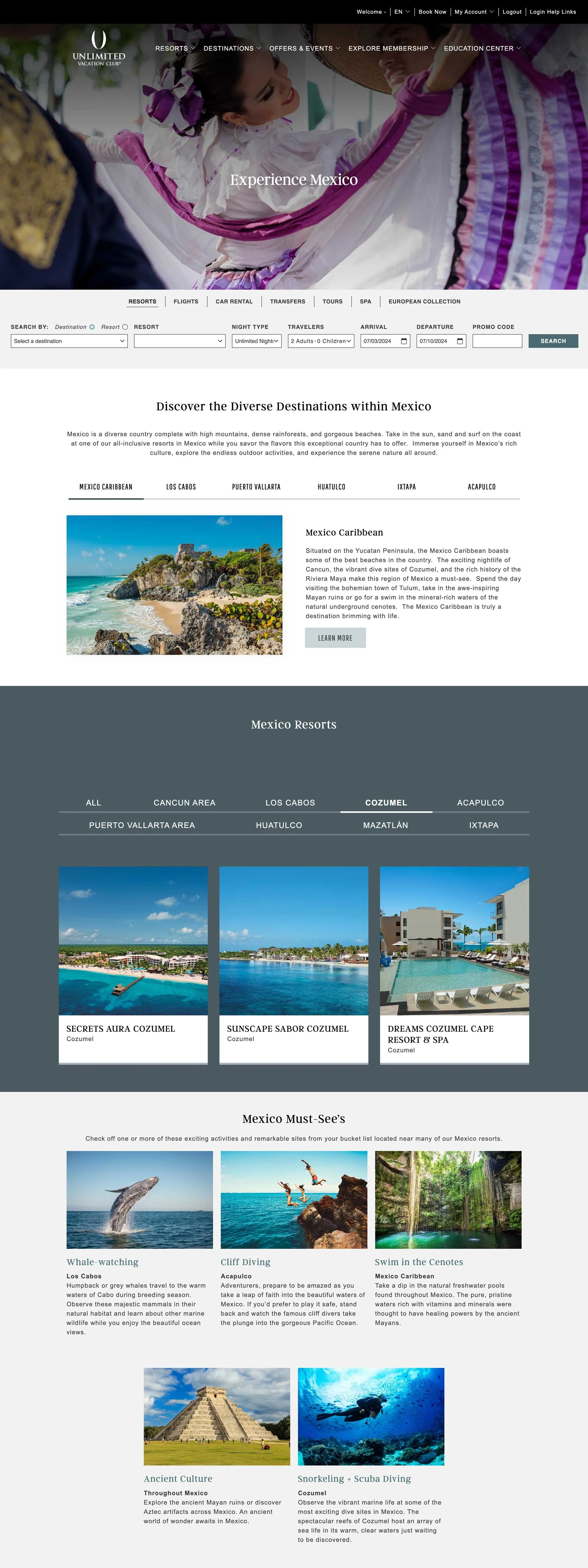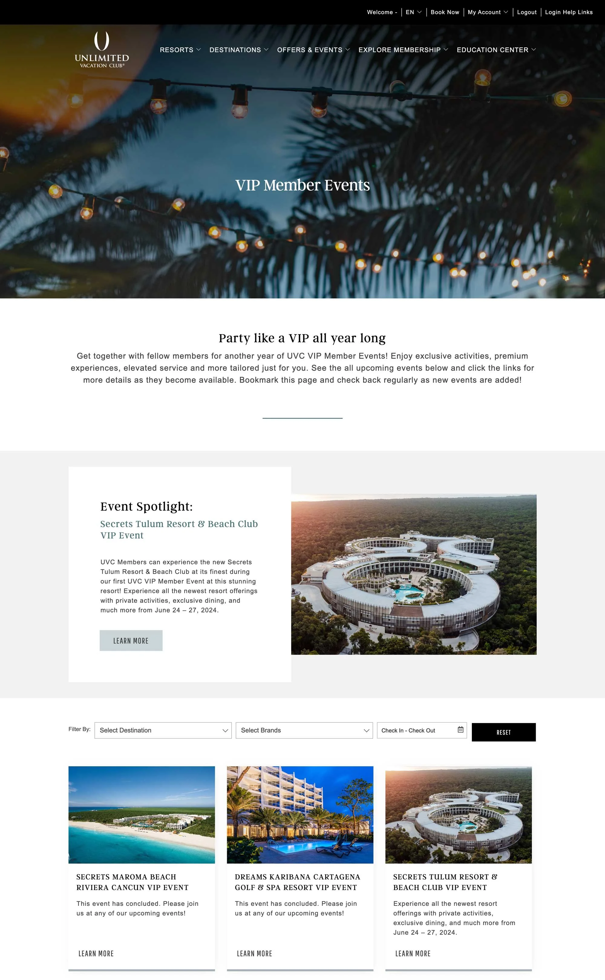 As a member-based loyalty travel club, the Unlimited Vacation Club serves as a hub not only for booking vacations but also for exploring member benefits, managing account information, and staying up to date with special offers, events, and news. I served as Art Director, Web Designer, and UX Designer on this project from discovery through launch to enhance the member experience and overall functionality.